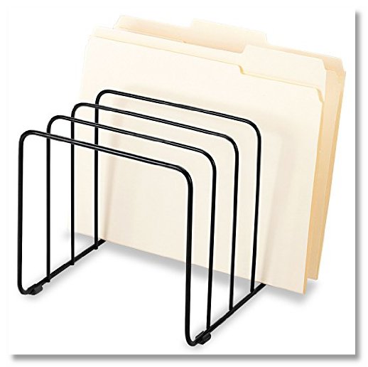 This works great. I bought 2 of them. It can hold several fat files, or lots of thin ones. The dimensions work well. The wire construction makes it easy to grip while holding folders and move. The wire is thick enough that it's sturdy. Very happy with this product.