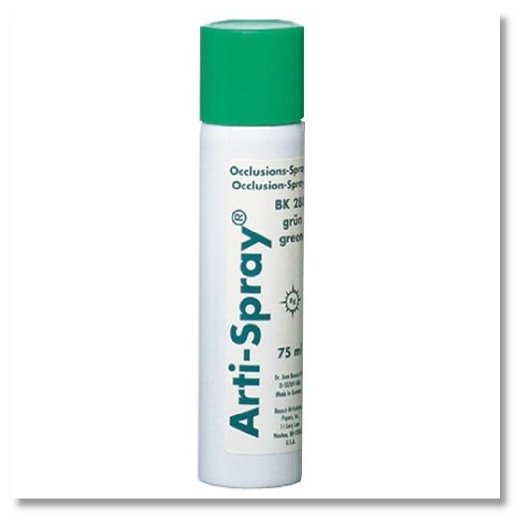 Arti-Spray¨ is a universal color indicator to test the occlusal contacts and accuracy of fit of crowns and bridges.
