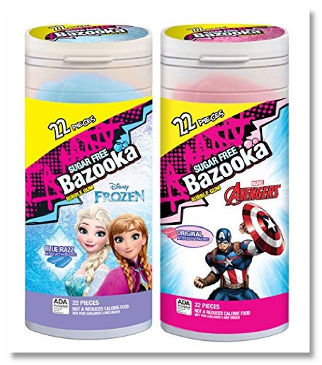 Bazooka Disney Frozen and Marvel Avengers Sugar Free Bubble Gum 22 Pieces (Pack of 8)