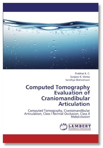 The Craniomandibular articulation (CMA) is a bicondylar articulation, with the mouth closed; the condyle is located in a centric position in glenoid fossae. Actually the morphology and function are intimately related. The loads to which the CMA is subjected vary according to the subjects? dentofacial morphologies. Therefore it can be suggested that both the condyle and the mandibular fossae differ in morphology in subjects with various malocclusions. All difficulties of Craniomandibular articulation imaging might be eliminated by using computed tomography (CT), which allows precise visualization of anatomic details. Thus reliable data concerning morphology, irregularities and condyle-fossae relationship can be obtained. In this text book, we have presented a simple and reliable method of CMA imaging using CT. This text book is very useful for the student and clinician interested in the study of CMA in general and for the Dental and Orthodontics professional in particular.