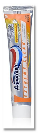 Stains on your teeth can be a real downer, right? Well, if you're looking to brighten your smile, look no further than right here! Over time, teeth can become stained from exposure to things like coffee and red wine. Toothpastes with whitening agents—like Aquafresh Extreme Clean Whitening Action—contain particles that polish your teeth back to their natural whiteness. Active Ingredient Sodium fluoride 0.25% (0.15% w/v fluoride ion) Inactive Ingredients Water, hydrated silica, sorbitol, glycerin, PEG-8, flavor, sodium lauryl sulfate, xanthan gum, titanium dioxide, cocamidopropyl betaine, sodium saccharin, iron oxide, red 30