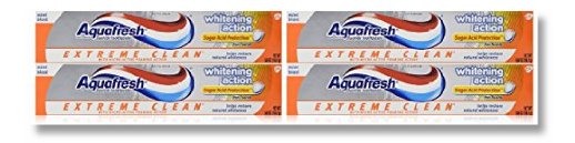 Stains on your teeth can be a real downer, right? Well, if you're looking to brighten your smile, look no further than right here! Over time, teeth can become stained from exposure to things like coffee and red wine. Toothpastes with whitening agents—like Aquafresh Extreme Clean Whitening Action—contain particles that polish your teeth back to their natural whiteness. Active Ingredient Sodium fluoride 0.25% (0.15% w/v fluoride ion) Inactive Ingredients Water, hydrated silica, sorbitol, glycerin, PEG-8, flavor, sodium lauryl sulfate, xanthan gum, titanium dioxide, cocamidopropyl betaine, sodium saccharin, iron oxide, red 30