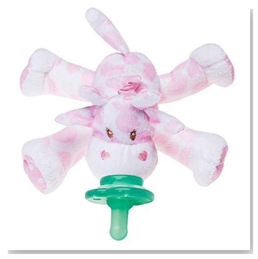 This is soft and cute. Perfect size or my little one to cuddle and hold. It fits the mam pacifier great. My baby can use the stuffed girder to hello push her pacifier into her mouth. And we do t loose track of the pacifier now