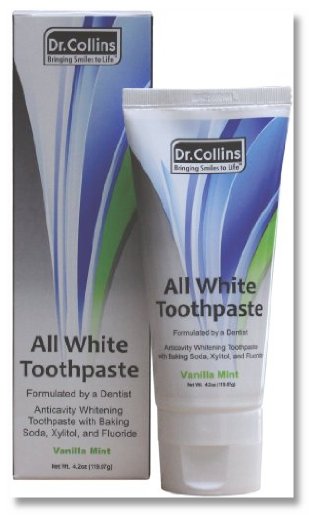 Wine, coffee and soda may taste great, but they can leave unattractive surface stains on your teeth. The All White Whitening Toothpaste, with its uniquely developed formula comprised of Xylitol and Peroxide, reduces plaque formation and helps whiten stained teeth. The formula has been developed with a 25% concentration of Xylitol, along with Sodium Monofluorphosphate to prevent cavities. All White also contains the antibacterial agent Cetyl Pyridinium Chloride to help fight bad breath. It is safe for dental work, and has the added ingredient of baking soda topped off with a great vanilla mint taste. The All White Whitening Toothpaste is a great way to help maintain a "post-cosmetic" smile or keep the natural white you may already have.