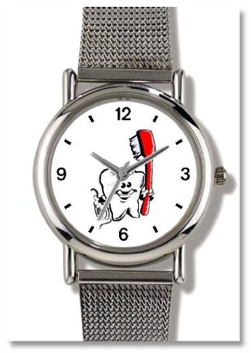 > Tooth and Toothbrush Chrome-Plated Metal Alloy Watch with Metal Mesh Strap (Men's Large)