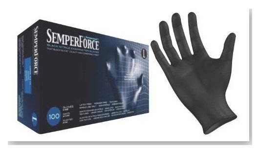 Semperforce Black Nitrile Powder Free, Latex Free,Examination Gloves 100/Box Size Large