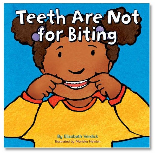 I do not like this book because it sends the wrong message. Teeth ARE for biting! Toddlers bite food, teethers, blankets, lots of things. We do not want them to bite friends! Check out the book "no biting"- better message as it has what we CAN bite :)