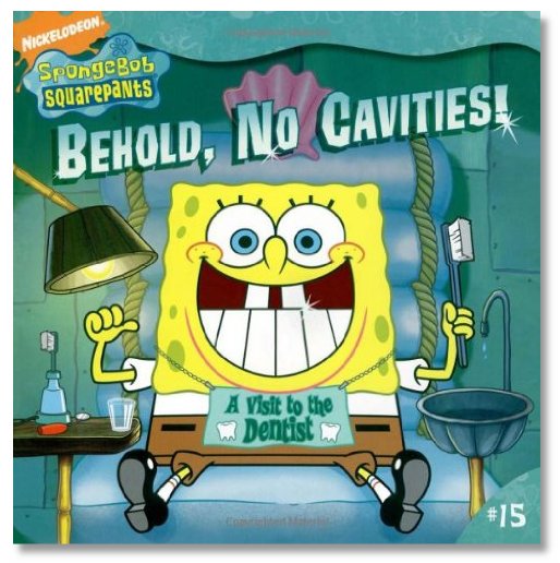 This is one of the better SpongeBob books. No whinning, no hyperness, none of the things that make SpongeBob the television show drive you nuts. SpongeBob has been taking wonderful care of his teeth but his pal Patrick hasn't been. So this book SpongeBob helps teach Patrick about dental care and takes him to his dentist for a cleaning. And help him understand the importance of going and getting proper care. Helping him not be scared of the office. This book would help children understand and not be scared of going to a dentist like Patrick (even if they end up with cavities)