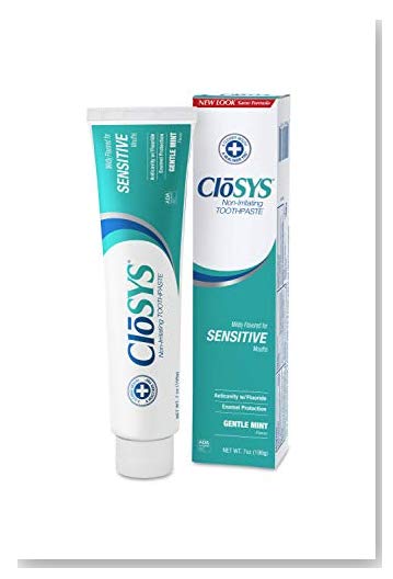 CloSYS contains mild polishing agents that help whiten teeth and remove tough stains, while being one of the least abrasive toothpastes available (Relative Dentin Abrasivity score=53). CloSYS protects the enamel and won't harm expensive dental work or irritate sensitive mouths. And CloSYS is one of the few toothpastes available that does not contain sulfates, which have been linked to allergies, mouth ulcers and canker sores. Use in conjunction with CloSYS oral rinse to maintain a truly healthy, pain-free mouth. Ingredients sodium fluoride, water, hydrated silica, sorbitol, stabilized chlorine dioxide, cellulose gum, dibasic sodium phosphate, titanium dioxide, flavor, sodium phosphate, sucralose.