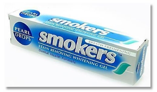 Pearl Drops smokers gel is developed for smokers, restoring teeth to their original whiteness. It contains micro-polishers which effectively and gently remove nicotine stains and has an extra fresh strong mint flavor that will give you extra fresh breath. Dental health formula effectively remove stains and plaque restore natural teeth whiteness. Reduces tartar build-up and protects against decay freshens breath. It contains micro-polishers which effectively remove nicotine, food and drink stains, and plaque. It contains fluoride and tartar-control agents for healthier teeth and gums. Ingredients Hydrogentated Starch Hydrolysate, Aqua, Hydrated Silica, Glycerin, Tetrapotassium Pyrosphate, Sodium Lauryl Sulfate, Tetrasodium Pyrophosphate, PEG-12, Aroma, Cellulose Gum, Sodium Saccharin, Sodium Fluoride, Limonene, CI 42090, CI 47005, Contains Sodium Fluoride (1100pm)