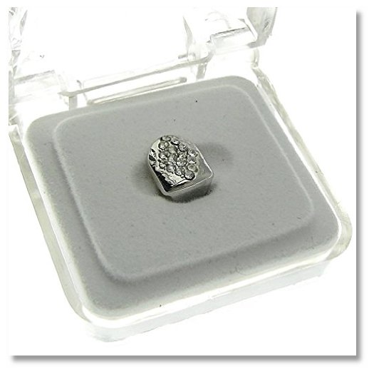 Single Cap Iced-Out CZ Diamond-Shape Silver Tone One Tooth Grill Teeth Grillz