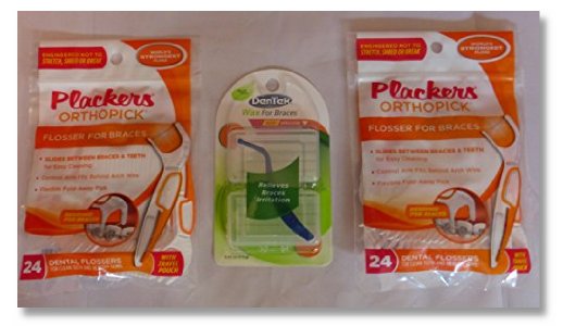 Plackers Ortho Bundle - Braces Care Kit (2 Packs Plackers / 1 Pack Dentek Wax) Total of 3 Items