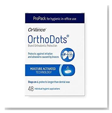 Let's face it - traditional dental wax doesn't work. It doesn't stick, and doesn't protect well against poking wires. That's why we created OrthoDots — The Better Dental Wax Alternative. OrthoDots are made from a BioMedical-Grade Silicone and contain a proprietary moisture-activated technology, so unlike dental wax, there is no need to dry your bracket before applying. OrthoDots are extremely moldable, comfortable, and easy to apply. They stay on longer than traditional orthodontic wax (up to 48 hours) and you can even eat & drink with them on! Contains 48 single-use, hygienically packaged OrthoDots.