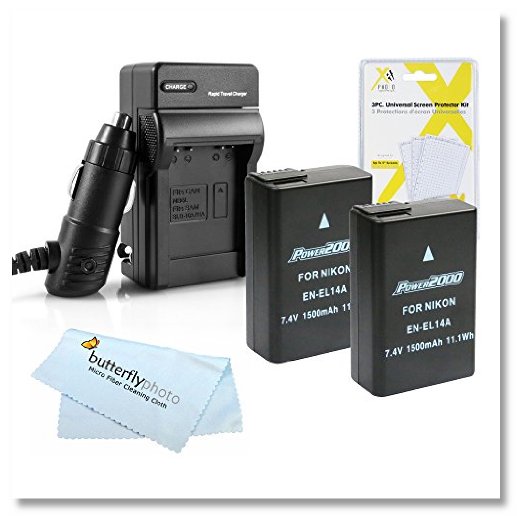 2 Pack Battery And Charger Kit For Nikon D5300, D3300, D5200, D5100, D3100, D3200, Nikon Df, P7700 Digital SLR Camera Includes 2 Extended (1500Mah) Replacement For Nikon EN-EL14a, EN-EL14 Batteries (Fully Decoded!) + Ac/Dc Rapid Charger + More