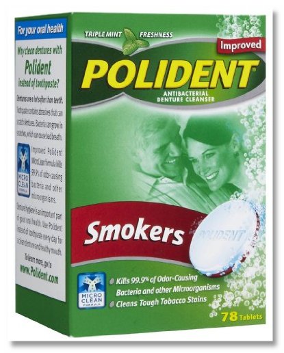 The Polident product for Smokers is so far superior to the regular variety, it makes me wonder why the regular is offered. Even though I am not a smoker, I prefer this one because it dissolves stains and whitens my dentures very effectively.