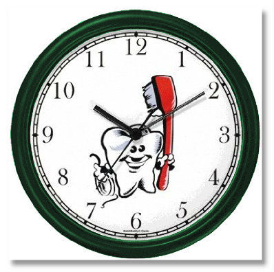 Home > Jewelry > Clocks > Toothpaste, Tooth Brush, Dental Floss, and Dentist Wall Clock (Hunter Green Frame)