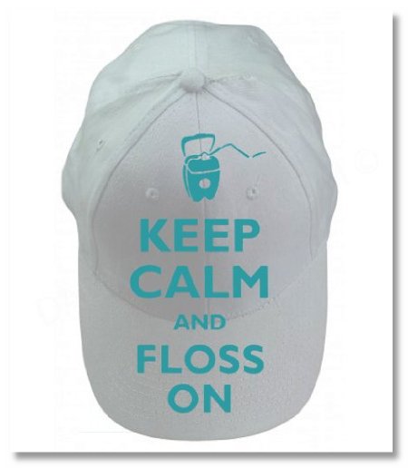 Keep Calm and Floss on Dentist 100% Cotton White Adjustable Cap Hat