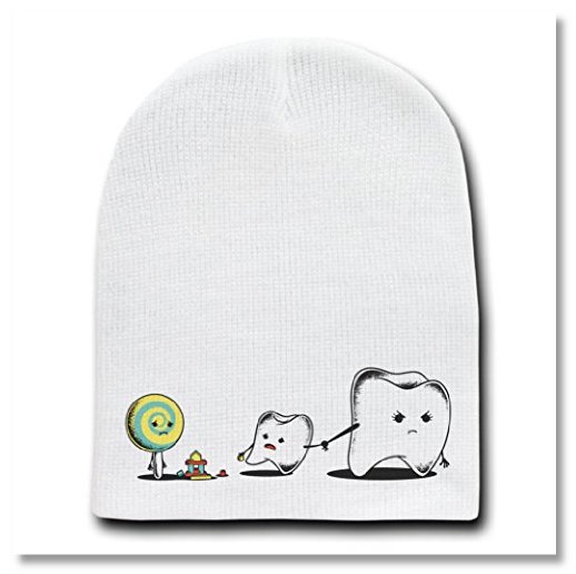 \"Bad Friend\" Teeth & Lollipop Funny Parody Logo - White Beanie Skull Cap Hat