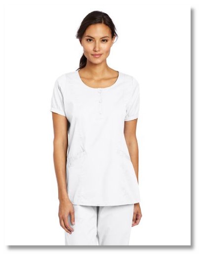 It fits well and functions the way it should. The only con to this shirt is the pockets. The pockets are deep and loose. They sag like geriatric boobs on the inside of the shirt. If the apron area of the shirt lifts up, your pocket boobs are exposed.