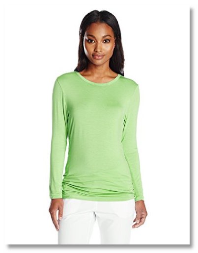 Not sure hope this shirt received so many good reviews. I bought "light pink" and found it too vibrant. The worst aspect is how the material wrinkles, wrinkles and wrinkles out of the washer and dryer! It doesn't matter what you do it's wrinkled. Hang it wet, dry fast on medium or dry it very slowing on no heat or anything in between it's wrinkled. It is soft and comfortable but that's about all I can say positive about it. Imthink it ran slightly wide. There's another similar shirt for $3.00 more but much much better. I've only washed it once and according to some reviews I can look forward to pilling mover this brand again! Free shipping doesn't always mean free returns. Research the seller before you buy.