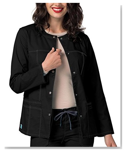I love this jacket. I am a physical therapist so I'm moving around a lot and the stretchiness of this jacket is so comfortable and does not make me feel restricted like some other lab coats do. The only down fall is it is hard to keep clean, I had to order another one after a year did to my first one getting dingy