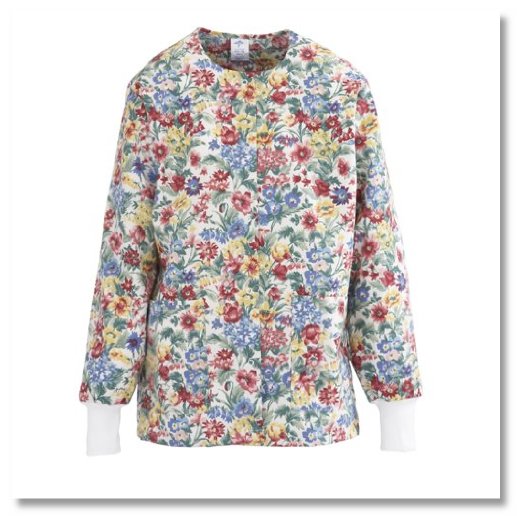 Medline 8809JSMM ComfortEase Ladies Jewel Neck Warm-Up Scrub Jackets, Medium, Spring Mix Print