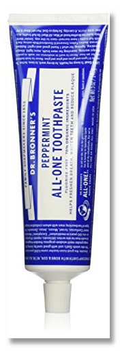 Dr. Bronner's All-One Toothpaste low-foaming formula reduces plaque whitens teeth and freshens breath yielding a tingling clean feeling unlike any other. Made with 70 organic ingredients including Fair Trade and organic coconut flour and coconut oil which aid as a mild abrasive Dr. Bronner's All-One Toothpaste is vegan fluoride-free non-GMO certified NSF certified and contains no synthetic foaming detergents or synthetic flavors. Organic Glycerin Organic Aloe Barbadensis Leaf Juice Hydrated Silica Calcium Carbonate Sodium Bicarbonate (Baking Soda) Potassium Cocoate (made with Organic Coconut Oil) Organic Mentha Piperita (Peppermint) Oil Organic Mentha Arvensis (Menthol) Crystals Organic Cocos Nucifera (Coconut) Flour Organic Cocos Nucifera (Coconut) Oil Tocopherol Citric Acid Carrageenan Xanthan Gum Organic Stevia Rebaudiana Leaf Stem Extract.