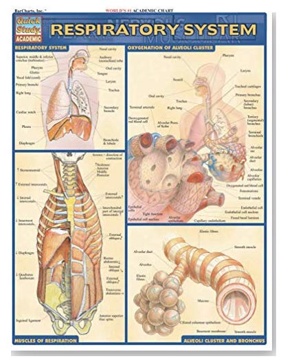 Complete, labeled illustrations of nine portions of the respiratory system. Illustrations by award-winning medical illustrator Vincent Perez. Chart includes detailed diagrams of: - respiratory system