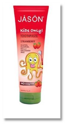 JĀSÖN ® Kids Only! Strawberry Toothpaste delivers fun fruity freshness and an easy to squeeze tube. Delicious Strawberry flavor keeps the kids coming back for more. Calcium Carbonate keeps teeth clean and healthy. Gluten, fluoride, SLS, and saccharin free. Ingredients Glycerin, Aqua (Water), Hydrated Silica, Xylitol, Xanthan Gum, Strawberry Flavor, Aloe Barbadensis Leaf Juice, Calendula Officinalis Flower Extract, Calcium Carbonate, Panthenol, Sodium Lauroyl Sarcosinate, Sodium Sulfate, Benzyl Alcohol