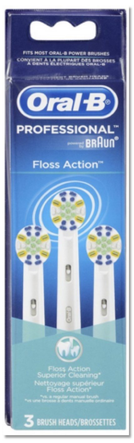 The Oral-B Floss Action Replacement toothbrush head provides a floss-like clean*. The round brush head is inspired by dental professional tools for a tooth-by-tooth clean, with specially engineered bristles for optimal tooth coverage. The Floss Action toothbrush head has unique floss action bristles to loosen plaque. Compatible with Oral-B Genius 8000, Oral-B PRO 7000, 6000, 5000, 3000 and 1000, and Oral-B Vitality. Each order comes with 3x Oral-B Floss Action Electric Replacement Toothbrush Heads. *on a Oral-B Pro 2000 or higher, does not replace flossing.