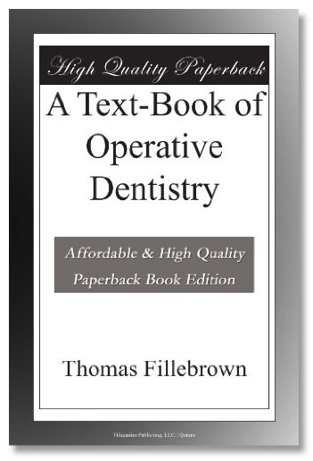 A Text-Book of Operative Dentistry by Thomas Fillebrown is presented here in a high quality paperback edition. This publication was produced from a professional scan of an original edition of the book, which can include imperfections from the original book or through the scanning process, and has been created from an edition which we consider to be of the best possible quality available. This popular classic work by Thomas Fillebrown is in the English language. A Text-Book of Operative Dentistry is highly recommended for those who enjoy the works of Thomas Fillebrown, and for those discovering the works of Thomas Fillebrown for the first time.