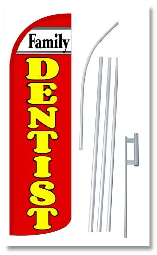 "FAMILY DENTIST" 12-foot SUPER Swooper Feather Flag With Heavy-Duty 15-foot Pole and Ground Spike
