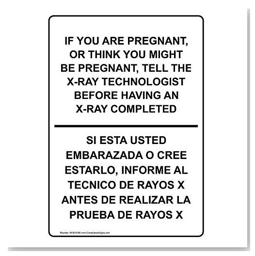 Plastic X-Ray Pregnancy Warning Sign with English/Spanish Text (7" x 10")