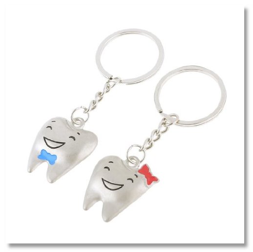 Lovers Pair Bowtie Accent Cartoon Tooth Pendant Keyrings Keychains Silver Tone