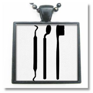 Doctor of Dental Surgery DDS Dental Tools Symbol Glass in Black Tile Pendant Necklace with Chain