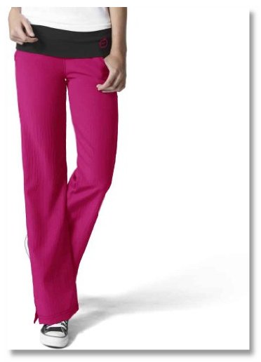 The fit is great but the wide stretch waistband tends to roll when bending. Love the four way stretch in the pants. The ceil blue is a little more lavender than the ceil blue scrubs I've worn in the past, but that's not an issue. These are the first pants of this type that I've bought. So far, so good.
