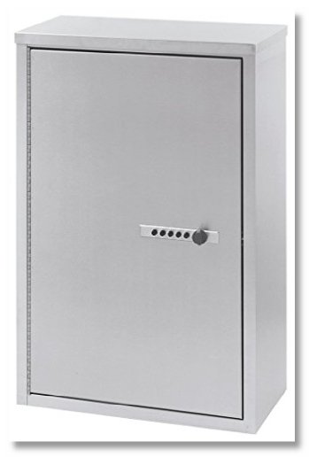 Constructed of durable, heavy duty stainless steel and meet schedule 2 drug storage requirements. They have strong piano hinged doors and a two door, dual locking system to ensure content security. The outside door has a triple bolt push button combination lock which opens to a second door secured by a flat key lock with a heavy gauge locking cam. Three extra keys are included for the flat key lock. The ambi top of the cabinet lifts so that the unit can be flipped to accommodate left or right outer door access. Its four aluminum shelves are adjustable and increase storage capacity. Pre-drilled holes that are reinforced with stainless steel mounting discs ensure stable wall attachment. Units are warranted for 10 years with 1 year on the locks.