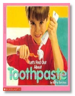 Illustrations and simple text describe the process of making toothpaste, from combining the raw ingredients to shipping the packaged tubes to the store.