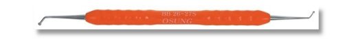 BB 26-27S Ball Burnisher with a Silicone Handle, End widths are 2.1m and 1.3mm. These Ball End Burnishers are designed with the dentist in mind. These high quality instruments feature a lightweight but wider diameter handle with silicone grips to help reduce hand and wrist fatigue. The silicone handles are color coded by instrument families, making it easier to identify the instrument when chairside.