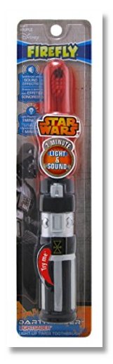 Know the power of The Force with the Firefly Star Wars Lightsaber Toothbrush! Inspired by the Star Wars movies, this lightsaber toothbrush keeps children entertained with real-voice sound effects and cool light-up effects like Obi-Wan Kenobi's lightsaber. This lightsaber toothbrush features soft, rounded, premium DuPont Tynex bristles so they are gentle on children's teeth while providing a through cleaning. The 1-minute light up timer and sound effects helps build good brushing habits and teach kids the dentist-recommended time for proper cleaning of each row of teeth. The ergonomic handle makes this lightsaber fun and easy to use. Firefly is dedicated to helping create good oral care habits at an early age by entertaining children into good oral care habits!