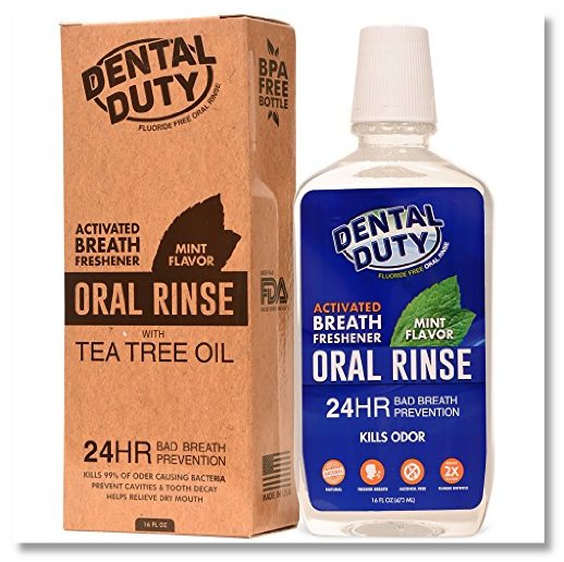 ENJOY THE FRESHEST BREATH EVER: with a Dental Duty all natural mouthwash 16 Oz. The cool minty flavor keeps your mouth fresh and clean for up to 24 hours! Remove bad breath, eliminate dryness and swipe away strong flavored foods that stain your teeth! REMOVE PLAQUE & BACTERIA: This activated breath freshener can effectively help you remove plaque, prevent gingivitis and tartar build-up, and minimize lingering bacteria and germs from your mouth. Restore your mouth's natural pH levels and enjoy healthier gums as well. 100% SAFE & NON ALCOHOLIC FORMULA: Our antibacterial mouthwash is proudly made in the USA with 100% all natural extracts, like Tea Tree Oil, Non GMO Xylitol, Aloe Vera and Peppermint. It contains no alcohol, no additives, no binders, no harmful ingredients. SUPPORT BETTER ORAL HEALTH: Improve your overall oral health by simply adding this restoring mouthwash to your daily regime. Freshen up your breath like never before, kill up to 99,9% of bacteria and soothe your dry mouth! And all of these in less than 1 minute and 1 rinse! GET THIS REMINERALIZING MOUTHWASH RISK FREE: Since your satisfaction is our top priority, this mouthwash is backed by our 60 day money back guarantee policy! Just in case you don’t simply love it. Great for men, women, kids and those with sensitive teeth and gums.