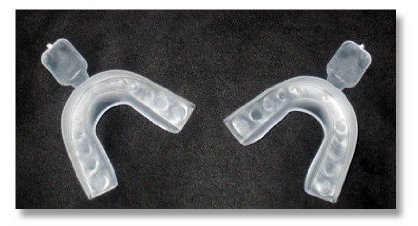 "Bring a pot of water to a boil and remove from heat. - Holding the handle, dip the tray in the water for 3-5 seconds. Over Exposure Will Melt the Tray! - Remove the tray from the water and let cool for 3 seconds - Place the tray in your mouth over your teeth, mold to your teeth by pressing firmly on the inside and outside of your teeth with your fingers (see fig. 1) - Allow the tray to cool while still inside your mouth - Remove the tray - Repeat the same process with the other tray for the lower set. - After forming the top of the trays can be trimmed to the gum line for a better fit."