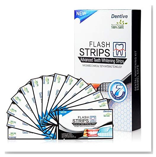 BAMBOO CHARCOAL POWER — Nano bamboo charcoal teeth whitening technology provides stronger adsorption capacity to any stains from coffee, wine or smoking and keep your breath fresh. Whiter teeth in just one use. 100% PEROXIDE FREE — Mild, safe and no irritation, unique innovative technology replaces peroxide with bamboo charcoal extracts, provides stronger whitening effects and reduce irritation to your teeth. SUPER-STRONG ADHESIVENESS — Up to 6-8 hours positioning time (while ordinary strips can maintain only 30 mins to 2 hours), perfect for night treatment and, super-long positioning allows the active whitening ingredients work more effectively. LONG LASTING — The effect lasts over 6 months, whitens 25 times better than any other leading teeth whitening toothpaste/ IT’S EASY — Compact 14 treatments design, it’s easy to carry, perfect for use at home, school or in the office etc.; And It’s easy to use, each pouch includes one upper and one lower strip, simply follow the 3 steps: peel, apply, reveal, it will keep your teeth shine INGREDIENTS — Glycerin, PVP-K30, Ethylcellulose, PVP-K90, Alcohol, Silica, Phthalimidoperoxycaproic Acid, Dicalcium Phosphate, Disodium EDTA, Sodium Hydroxide, and Menthol.