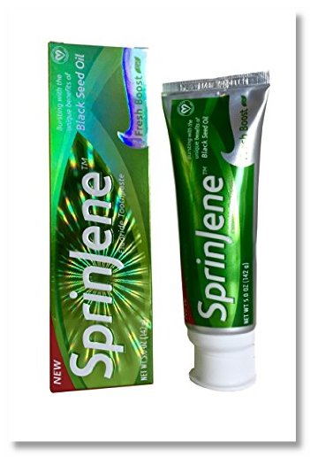 SprinJene is a premium, handcrafted toothpaste that leverages the best of science and nature to provide gentle and effective care. Developed by a PhD scientist with a longstanding career in oral care products, SprinJene does not use harsh chemicals or abrasives. SprinJene toothpastes fight cavities, strengthen enamel, help prevent gingivitis, help prevent plaque and tartar, whiten teeth, remove stains, freshen breath, and help eliminate dry mouth. Only SprinJene uses black seed oil with its legendary health benefits, and our ingredient selection and manufacturing processes are so meticulous that we are the only toothpaste to be certified gluten-free, vegan, kosher and halal. Active ingredient: Sodium Fluoride: 0.243% (0.15% w/v fluoride ion) Inactive ingredients: Aqua, Hydrated Silica, Glycerin, Sorbitol, Sodium Lauryl Sulfate, Flavor, Cellulose gum, Zinc Citrate, Black seed Oil (Nigella Sativa), Tetrasodium Pyrophosphate, Xanthan Gum, Sodium Saccharin, Mica, FD&C Blue No.1, FD&C Yellow No.5