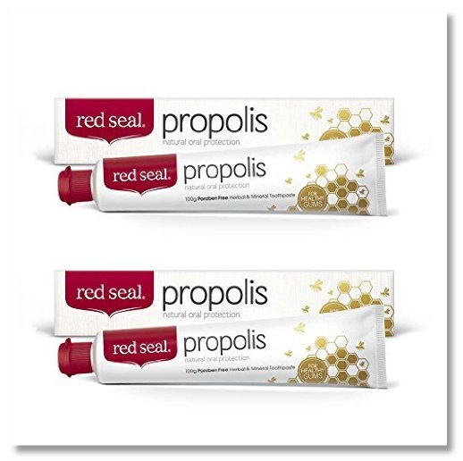 Red Seal Natural Propolis Toothpaste has been formulated with premium New Zealand bee propolis which to promote healthy teeth and gums and prevent infections. This toothpaste offers a subtle mint flavor with a mild polishing action. Propolis is a pure organic substance with natural antibiotic properties. Bees use it to protect their bee colony from infection. Natural Bee Propolis extract promotes gum health by inhibiting the proliferation of cariogenic bacteria that is responsible for gum infections and the erosion of tooth enamel. This toothpaste is also useful in cases of gingivitis and mouth ulcerations. Has no added fluoride. Natural antibacterial action. Color and Paraben free! Has NO tricoslan, peroxide, potassium nitrates, or strontium chloride. Suitable for the whole family! Ingredients Calcium Carbonate, Purified Water, Sorbitol, Glycerin, Sodium Lauryl Sulphate, Silica, Titanium Dioxide, Cellulose Gum, Magnesium aluminium Silicate, Menthol, Propolis Extract, Sodium Saccharin, Aniseed Oil, Peppermint Oil, Eucalyptus oil, Totarol