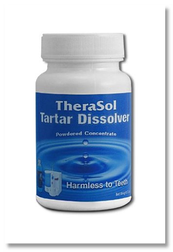 TheraSol Tartar Dissolver actually dissolves the tartar that builds up around teeth. Even the hardest tartar will get soft enough to be brushed away. It does so by reversing the way tartar forms in the first place. When oral bacteria die, the minerals in saliva convert them into brick-like miniature fossils that become attached to the positively charged calcium phosphate crystals in teeth. Smaller calcium phosphate salts from saliva fill the gaps between the fossilized bacteria like mortar between bricks. Repeated applications of TheraSol Tartar Control neutralize the ionic charges between the calcium phosphate salts, gradually loosening their bonds to each other and the tooth, gradually dissolving the outer layers and softening the layers below so they can be brushed away. It takes months for tartar to form so it can take a few weeks to entirely reverse the process with repeated applications and brushing. How To Use: TheraSol Tartar Dissolver is a highly concentrated powder. Dilute with ordinary tap water before using. For moderate tartar (calculus), mix 1 scoop (provided) in.5 cup of warm water. 2 scoops for heavy calculus. Swish vigorously for 2 minutes, 2x/day. The more often you use it, the faster the results. Even more effective, instead of swishing, brush with what's in your mouth like a liquid toothpaste. Spit solution out after rinsing.