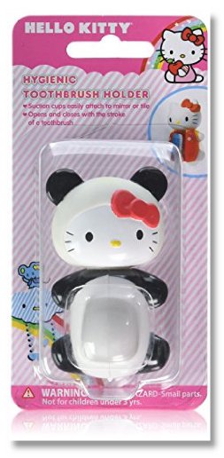 The picture is misleading. I actually bought the Flipper brand Panda from Bed Bath & Beyond and wanted to replace the exact toothbrush holder I had. I received the Hello Kitty head on a Panda body. I was disappointed and I made a sad face at first. That's when I realized I am 30-years old, buying a tooth brush holder intended for children. The Hello Kitty Panda opens and closes VERY easily and sticks well to my mirror. You can easily clean it and take it on the go. Love it!
