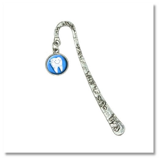 Happy Tooth Dentist Book Bookmark with Antiqued Charm