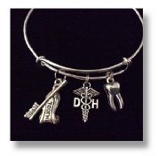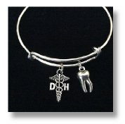Dental Hygienist DH Caduceus and Tooth Expandable Charm Bracelet