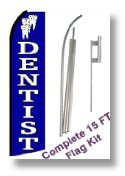 Dentist Dark Blue (Extra Wide) Flag Kit - Includes 12' Swooper Feather Business Flag With 15-foot Flagpole and Ground Spike
